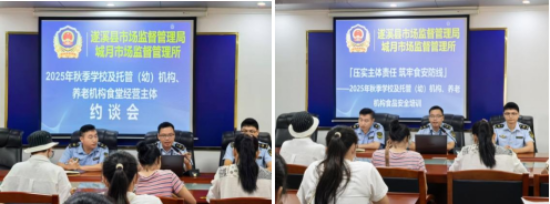 筑牢食品安全防線,守護特殊場所飲食安全。2025年9月23日上午,遂溪縣市場監(jiān)督管理局城月所(下簡稱:城月所)組織召開2025年秋季學校及托管(幼)機構(gòu)、養(yǎng)老機構(gòu)食堂經(jīng)營主體約談會和食品安全培訓(xùn),旨在進一步強化食品安全管理,督促各食堂經(jīng)營主體嚴格落實主體責任,切實保障師生、托管幼兒與養(yǎng)老機構(gòu)老人的飲食安全與健康,遂溪縣市場監(jiān)督管理局基層行政執(zhí)法實踐培訓(xùn)中心學員參加了此次會議。