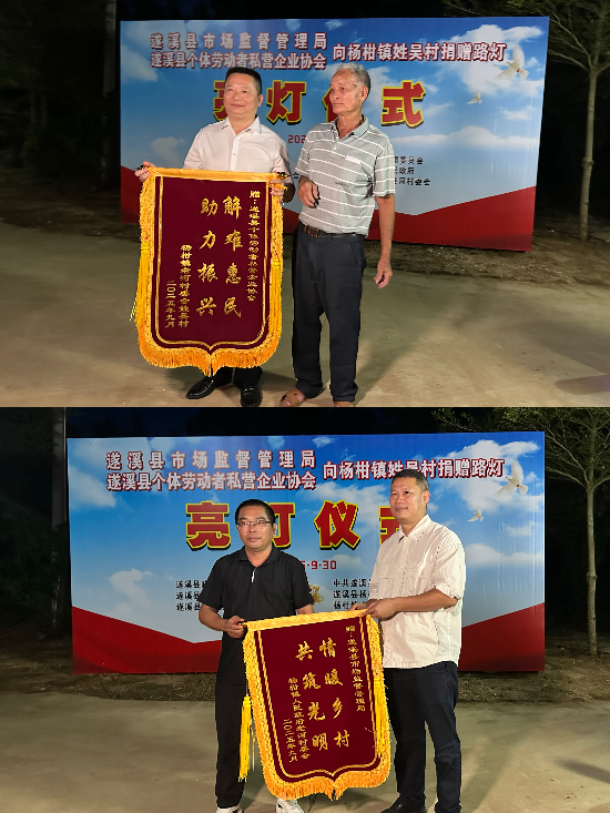 9月30日晚上,在楊柑鎮(zhèn)姓吳村文化廣場(chǎng)上,隨著52盞嶄新的太陽能路燈次第亮起,村民們歡呼雀躍、掌聲雷動(dòng)。這場(chǎng)由遂溪縣政協(xié)牽線搭橋、遂溪縣市場(chǎng)監(jiān)管局統(tǒng)籌協(xié)調(diào)、遂溪縣個(gè)體私營企業(yè)協(xié)會(huì)積極響應(yīng)的姓吳村路燈亮燈儀式正式啟動(dòng)。