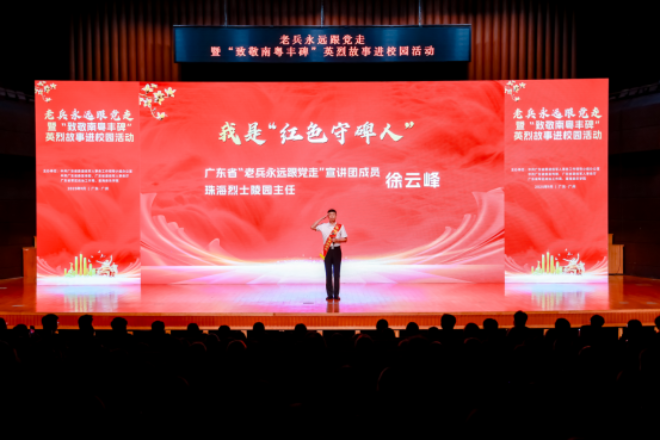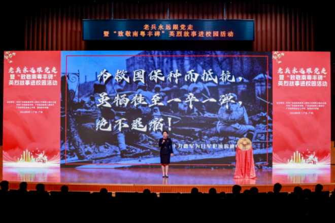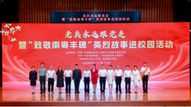 今年是中國(guó)人民抗日戰(zhàn)爭(zhēng)暨世界反法西斯戰(zhàn)爭(zhēng)勝利80周年、中國(guó)人民志愿軍抗美援朝出國(guó)作戰(zhàn)75周年。9月10日,由中共廣東省委退役軍人事務(wù)工作領(lǐng)導(dǎo)小組辦公室、中共廣東省委宣傳部、廣東省退役軍人事務(wù)廳、廣東省軍區(qū)政治工作局、星海音樂(lè)學(xué)院等單位共同主辦的“老兵永遠(yuǎn)跟黨走”暨“致敬南粵豐碑”英烈故事進(jìn)校園活動(dòng)在星海音樂(lè)學(xué)院成功舉辦。