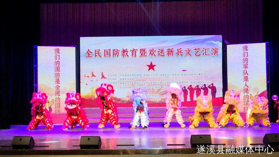《群獅賀盛會(huì)》的上演拉開(kāi)全民國(guó)防教育暨歡送新兵文藝演出的序幕。整場(chǎng)演出精彩紛呈,力量與美感交織相融:部隊(duì)官兵帶來(lái)的武術(shù)表演《武動(dòng)山河》、技藝表演《烽火戰(zhàn)旗》震撼登場(chǎng),盡顯剛勁風(fēng)采;《龍吟醒遂》、《為你榮耀》等舞蹈、歌唱節(jié)目溫情上演,傳遞動(dòng)人情懷。剛?cè)岵?jì)的精彩呈現(xiàn),不僅充分激發(fā)了新兵投身軍旅的堅(jiān)定決心,更進(jìn)一步提升了全民國(guó)防意識(shí)。