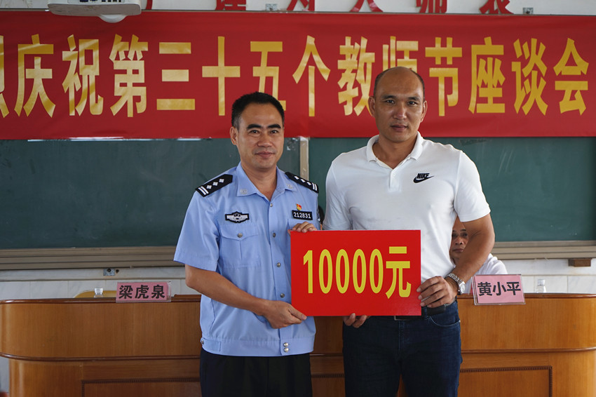 梁虎泉向黃略初級(jí)中學(xué)贈(zèng)送慰問(wèn)金