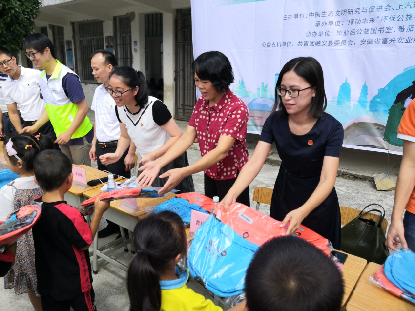 這次活動是共青團遂溪縣委貫徹落實遂溪縣委縣政府關于粵桂(遂溪-融安)扶貧協(xié)作工作的部署和要求,積極發(fā)揮與團融安縣委相互交流的橋梁作用,牽線中國生態(tài)文明研究與促進會、上汽通用汽車有限公司、“綠動未來”環(huán)保公益平臺、畢業(yè)后公益圖書室等愛心組織,整合社會上閑置書籍,捐贈了價值 10 余萬愛心物資,包含圖書、書架、桌椅、電腦等室內(nèi)硬件設施(電視、電腦、網(wǎng)絡),在融安縣泗頂鎮(zhèn)山貝小學援建“綠動未來”環(huán)保公益圖書館。