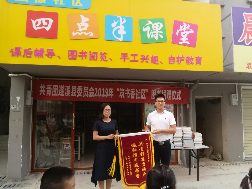 9月3日,共青團遂溪縣委陳春燕書記一行到融安縣易地扶貧搬遷安置點-融康社區(qū)調(diào)研,并為社區(qū)“四點半課堂”捐贈圖書。融安縣府辦副主任、粵桂組副組長吳垂超參加活動。