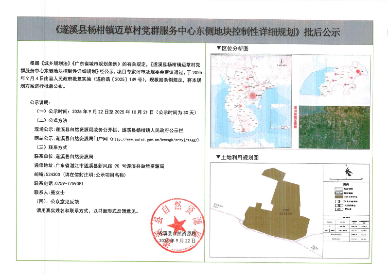 《遂溪縣楊柑鎮(zhèn)邁草村黨群服務(wù)中心東側(cè)地塊控制性詳細(xì)規(guī)劃》批后公示