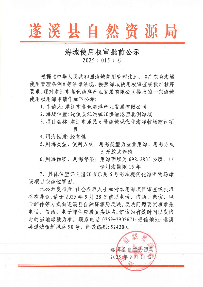 海域使用權(quán)審批前公示 2025﹝015﹞號(hào)