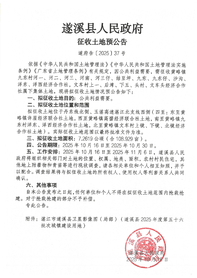 遂溪縣人民政府 征收土地預(yù)公告 遂府告〔2025〕37號