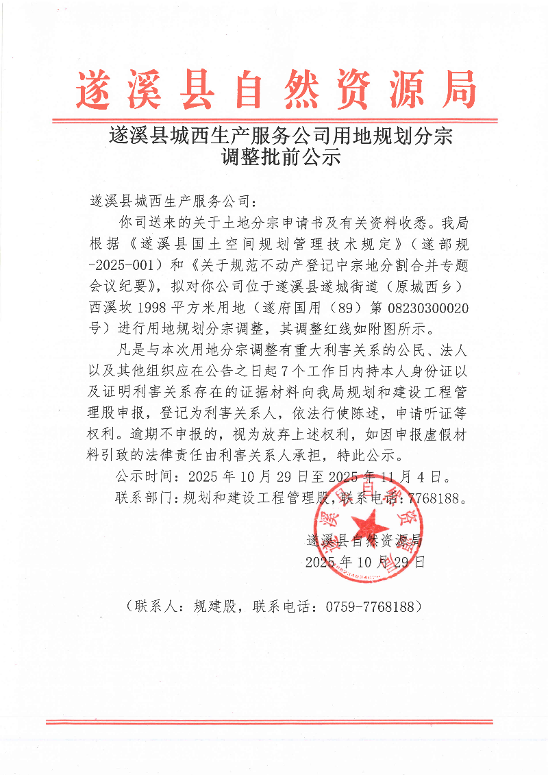 遂溪縣城西生產(chǎn)服務(wù)公司用地規(guī)劃分宗調(diào)整批前公示