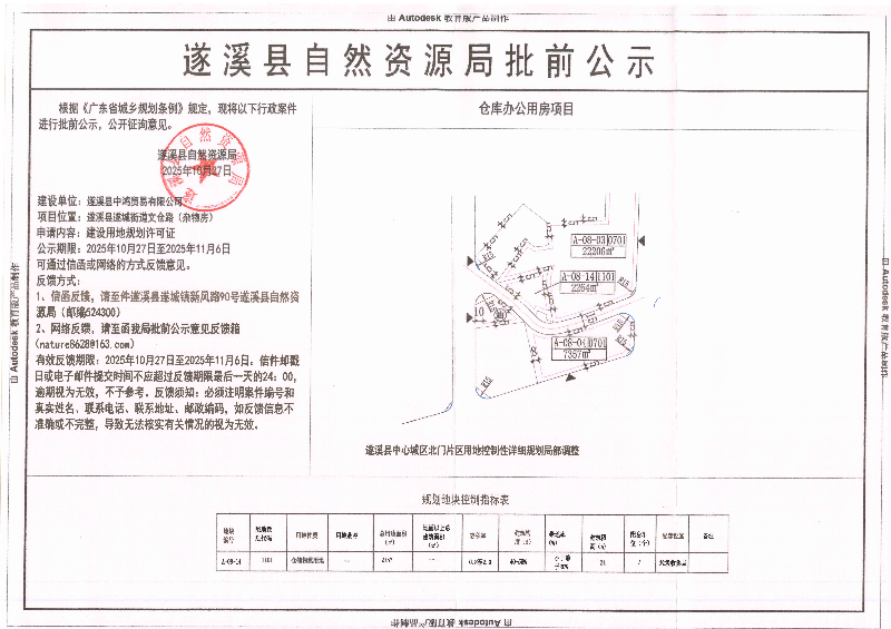 遂溪縣中鴻貿(mào)易有限公司倉庫辦公用房項(xiàng)目建設(shè)用地規(guī)劃許可證批前公示
