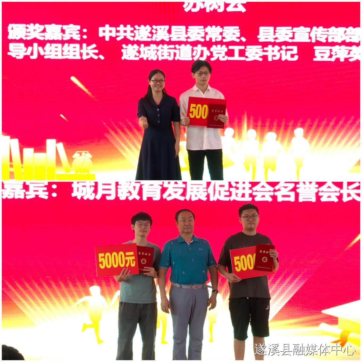 與會領導和鄉(xiāng)賢分別為20名愛心人士代表頒發(fā)感謝狀和榮譽證書;為優(yōu)秀教師頒發(fā)感謝狀和獎金;并為考上博士、碩士生學位和重點大學的優(yōu)秀學子以及高考、中考、小考取得優(yōu)秀成績的學子頒發(fā)助學金。