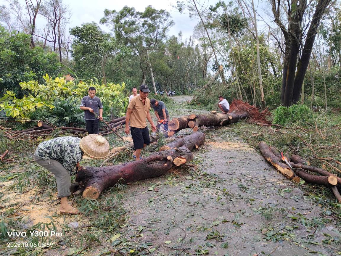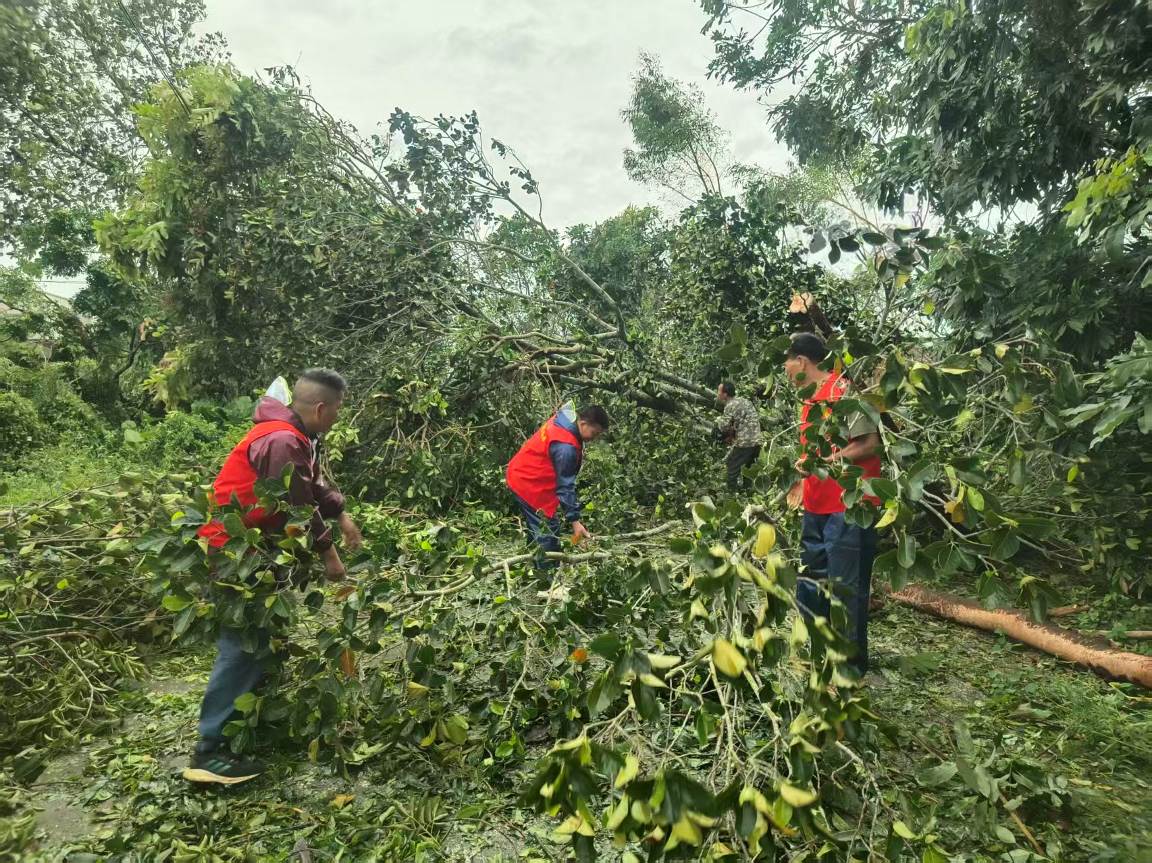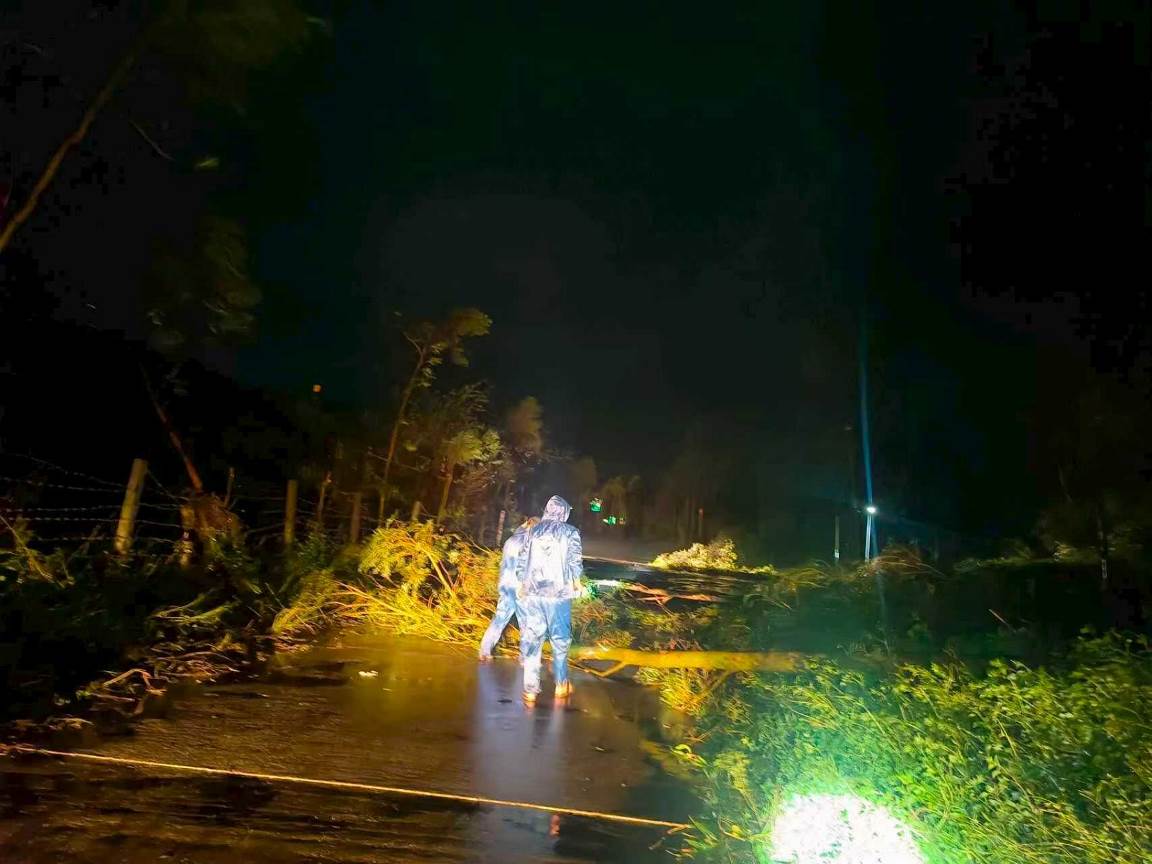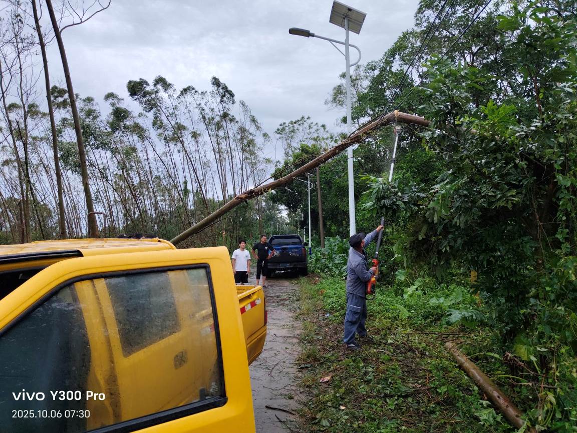 搶通道路,晝夜攻堅(jiān)護(hù)民生。10月5日晚,風(fēng)雨稍歇,鎮(zhèn)黨政主要領(lǐng)導(dǎo)第一時(shí)間冒雨投入搶險(xiǎn)救災(zāi)工作。鎮(zhèn)應(yīng)急搶險(xiǎn)隊(duì)頂著狂風(fēng)暴雨,手持電鋸分工作業(yè),在泥濘與夜色中連續(xù)奮戰(zhàn),清理倒樹180余棵,排除路障9處,及時(shí)恢復(fù)道路通行;主動(dòng)協(xié)調(diào)供電、通信部門開展搶修工作,累計(jì)搶修受損線路11公里,成功恢復(fù)3個(gè)行政村的供電與通訊,讓村民逐步重拾正常生活秩序。