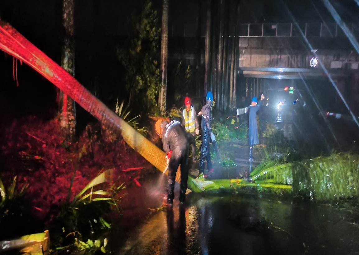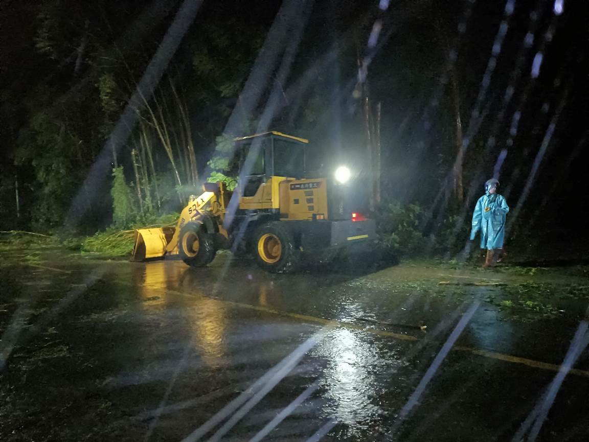 圖為應(yīng)急搶險(xiǎn)隊(duì)連夜開展路障清理工作