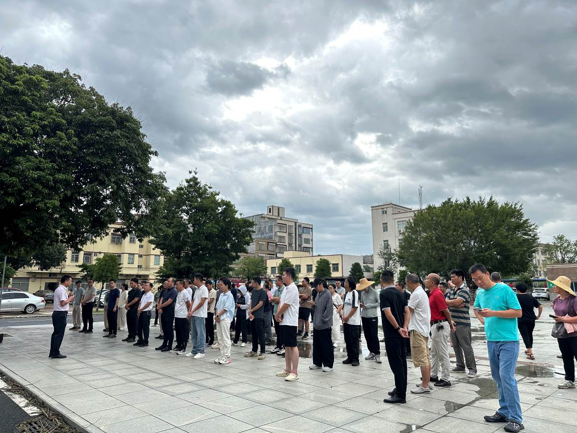 圖為洋青鎮(zhèn)黨委書記陳榮慶集合全鎮(zhèn)干部職工部署災(zāi)后重建工作