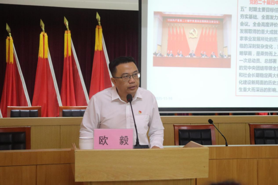 為深刻領(lǐng)會(huì)和準(zhǔn)確把握黨的二十屆四中全會(huì)的重大意義、精神實(shí)質(zhì)和實(shí)踐要求,切實(shí)把廣大黨員干部群眾的思想和行動(dòng)統(tǒng)一到黨中央的決策部署上來(lái),2025年11月10日上午9時(shí),建新鎮(zhèn)在鎮(zhèn)四樓會(huì)議室召開(kāi)黨的二十屆四中全會(huì)精神專題宣講會(huì)。鎮(zhèn)班子成員、鎮(zhèn)全體干部職工、各機(jī)關(guān)單位負(fù)責(zé)人、各村黨支部書(shū)記及主任參加會(huì)議。