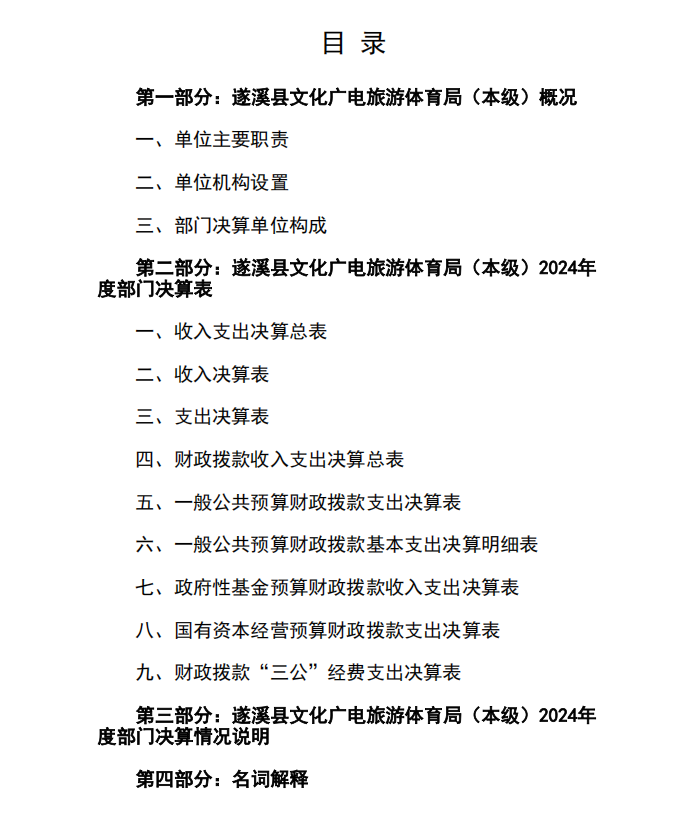 2024年度遂溪縣文化廣電旅游體育局(本級)部門決算 | | 作者: | 來源:遂溪縣文化廣電旅游體育局 | 時間:2025-09-17 15:58:31 點擊數(shù):- 2024年度遂溪縣文化廣電旅游體育局(本級)部門決算.pdf 【打印正文】