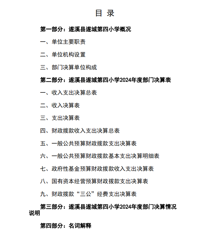 2024年度遂溪縣遂城第四小學(xué)部門決算 | | 作者: | 來源:遂溪縣教育局 | 時間:2025-09-18 09:52:07 點擊數(shù):- 2024年度遂溪縣遂城第四小學(xué)部門決算.pdf 【打印正文】
