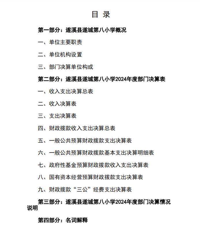 2024年度遂溪縣遂城第八小學(xué)部門決算 | | 作者: | 來源:遂溪縣教育局 | 時間:2025-09-18 10:20:07 點擊數(shù):- 2024年度遂溪縣遂城第八小學(xué)部門決算.pdf 【打印正文】