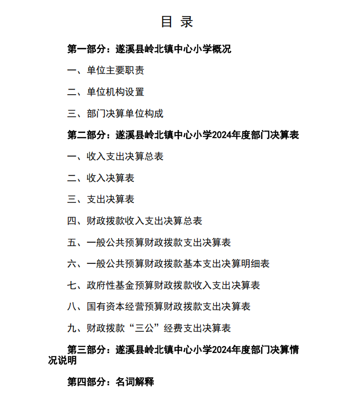 2024年度遂溪縣嶺北鎮(zhèn)中心小學(xué)部門決算 | | 作者: | 來源:遂溪縣教育局 | 時(shí)間:2025-09-18 10:23:12 點(diǎn)擊數(shù):- 2024年度遂溪縣嶺北鎮(zhèn)中心小學(xué)部門決算.pdf 【打印正文】