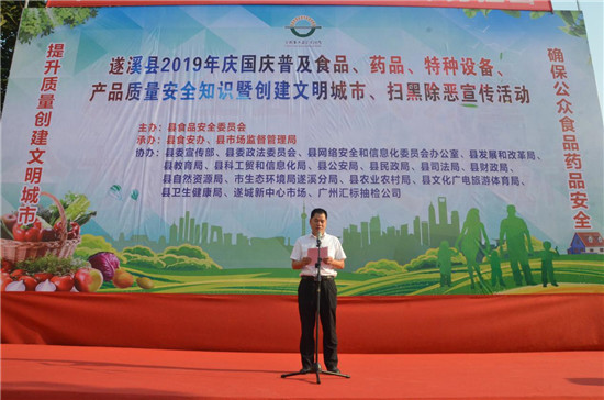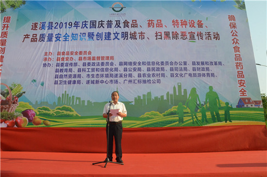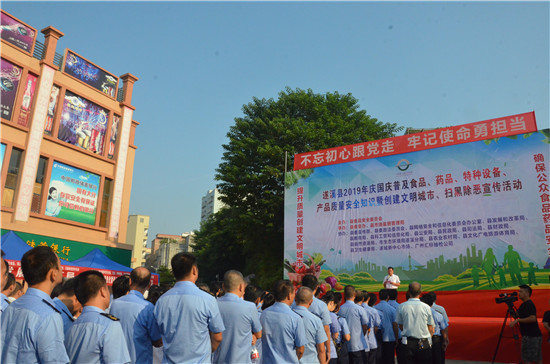 遂溪縣舉辦2019年慶國(guó)慶 普及食品、藥品、特種設(shè)備、產(chǎn)品質(zhì)量安全知識(shí)暨創(chuàng)建文明城市、掃黑除惡大型宣傳活動(dòng)
