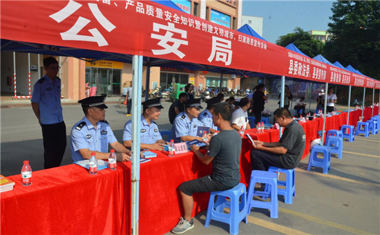 活動(dòng)現(xiàn)場(chǎng)人頭涌涌、熱鬧非凡,兩旁搭起宣傳超市長(zhǎng)廊,縣委縣政府及縣直職能局都設(shè)有展臺(tái),縣委宣傳部、縣創(chuàng)文辦在向群眾宣講創(chuàng)建文明城市工作方面;縣委政法委、縣掃黑辦、縣公安局、縣司法局宣傳掃黑除惡方面;縣市場(chǎng)監(jiān)督管理局現(xiàn)場(chǎng)向群眾進(jìn)行真假商品辯別、食品安全檢測(cè)、產(chǎn)品質(zhì)量檢查、特種設(shè)備安全、真假藥品的辨認(rèn)、粵省事操作等宣傳工作,并現(xiàn)場(chǎng)為20多名群眾提供快檢檢測(cè)工作。宣傳活動(dòng)聚焦人民群眾的操心事、煩心事、揪心事,切實(shí)把群眾關(guān)心的“四大安全”問(wèn)題當(dāng)作縣局的工作目標(biāo)和導(dǎo)向,提高群眾對(duì)安全質(zhì)量工作、文明城市創(chuàng)建工作、掃黑除惡工作的知曉率、參與率和滿意度,努力做到以和諧穩(wěn)定的社會(huì)環(huán)境慶祝中華人民共和國(guó)成立70周年。