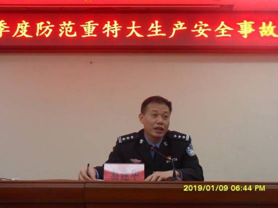 2019年1月9日下午,遂溪縣召開2019年第一季度防范重特大生產(chǎn)安全事故工作會(huì)議。受陳政縣長(zhǎng)委托,副縣長(zhǎng)、公安局局長(zhǎng)易建華出席會(huì)議并作重要講話,縣安委辦主任、縣安監(jiān)局局長(zhǎng)符仲謀和縣有關(guān)單位主要領(lǐng)導(dǎo)和各鎮(zhèn)鎮(zhèn)長(zhǎng)、部分重點(diǎn)企業(yè)負(fù)責(zé)人共100多人參加了會(huì)議。